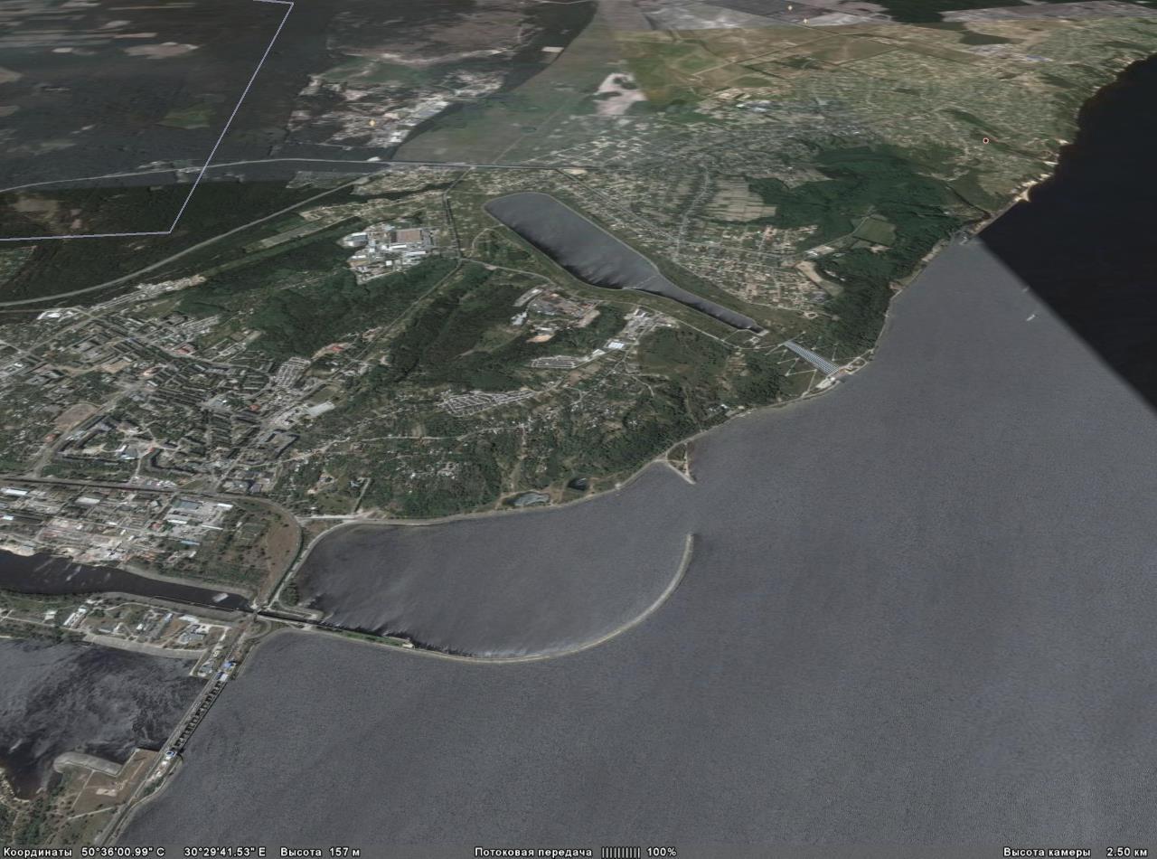 Еще немного порыскав, надыбал склон рядом с Вышгородом (практически сам Вышгород ) по гуглям высота склона 150м и тут же Киевское море ...