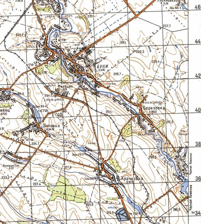 Между Буками и березовкой старты под северо-восток, но внизу дома, разве кусок полевой дороги между селами привлекает внимание.(аккурат под голубым числом 150,3.) Место покруче - над Буками: чистый север, но высота чуть поменьше.
