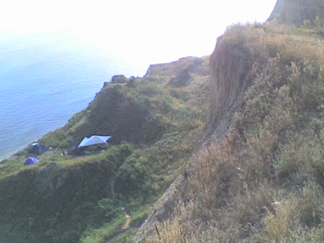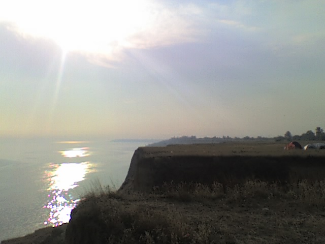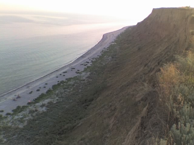 Подхожу к обрыву, места вроде знакомые по фоткам с одесского сайта, спрашиваю у людей, поднимающихся с пляжей. Да, летают, но стартуют где-то не здесь. А места красивые, и дует так ровненько, не очень сильно правда, Пчел бы держало уверенно,да и меня вроде б тоже.